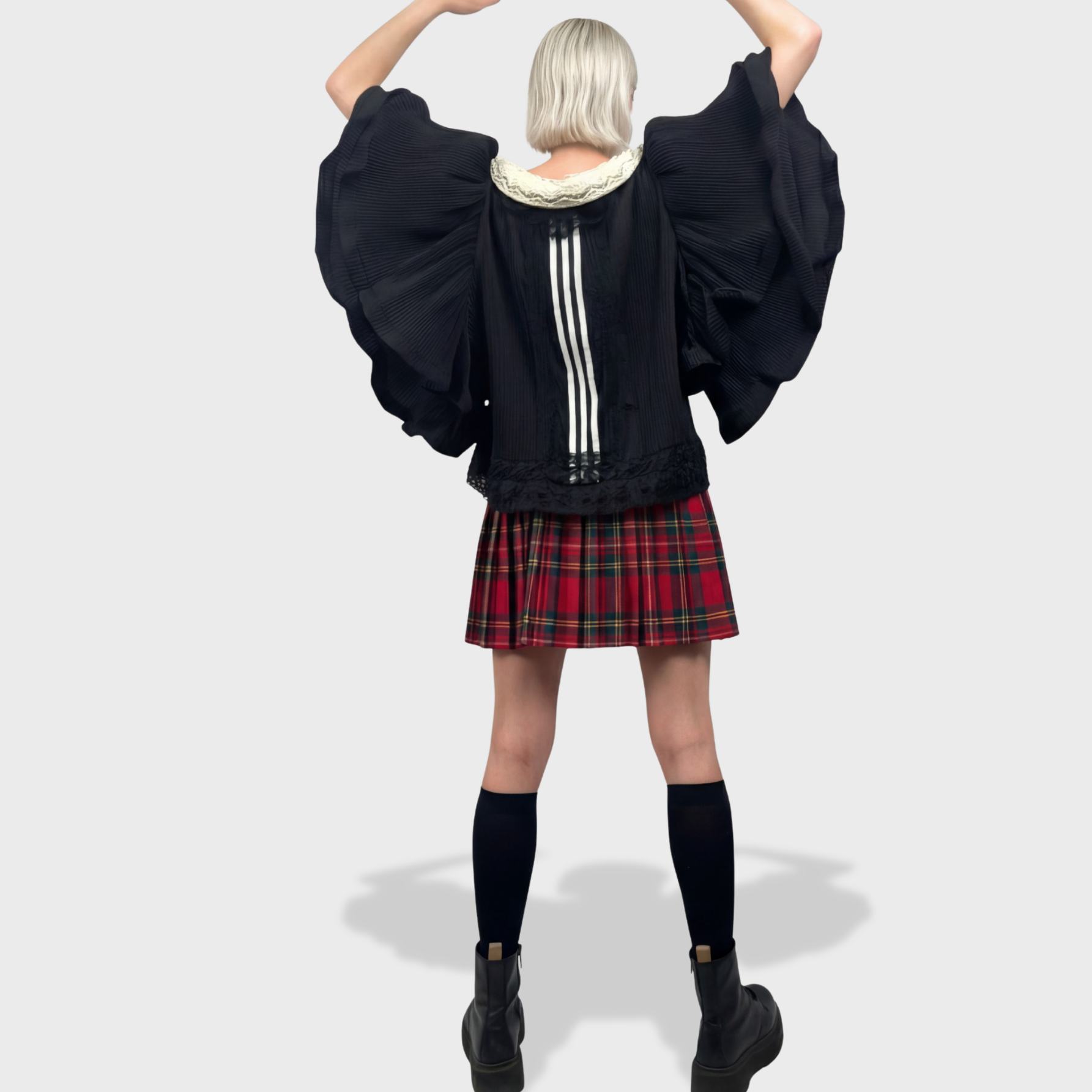 NOTE : Nos produits sont des créations upcyclées. Cela signifie que chaque pièce est retravaillée à partir de vêtements existants (vintage ou de seconde main), ce qui peut entraîner de légères imperfections. Ces particularités font partie intégrante du charme et de l’authenticité de nos créations et ne sauraient être considérées comme des défauts. Nous nous engageons à fournir des descriptions et des photographies les plus fidèles possibles.